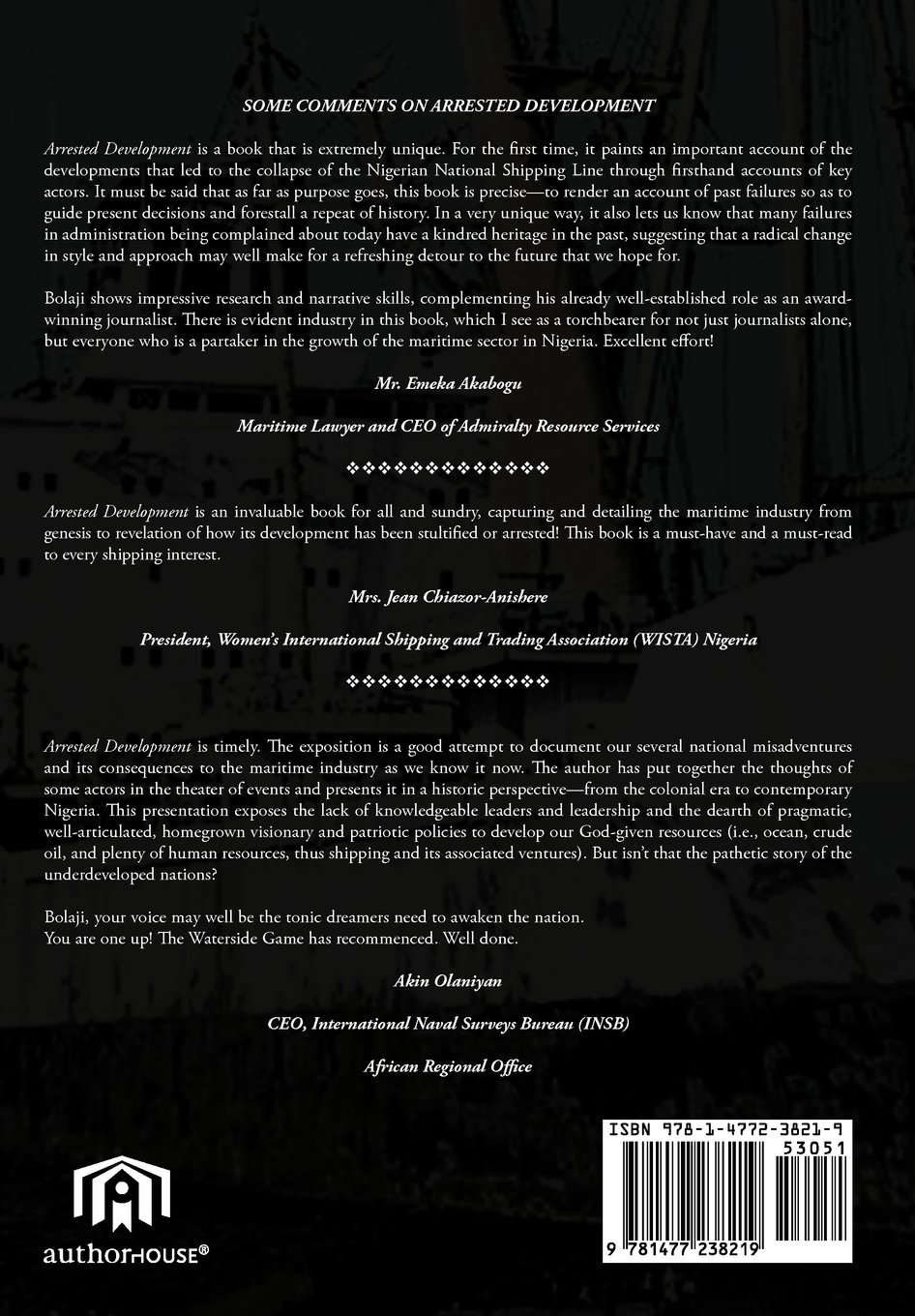 - Arrested Development A Journalist S Account Of How The Growth Of Nigeria S Shipping Sector Is Impaired By Politics And Inconsistent Policie Amazon Co Uk Akinola Bolaji 9781477238219 Books . Arrested Development Takes A Hard Look At The State Of Nigeria's Shipping Sector And Concludes That The Sector Has Failed To Live Up To Expectation.