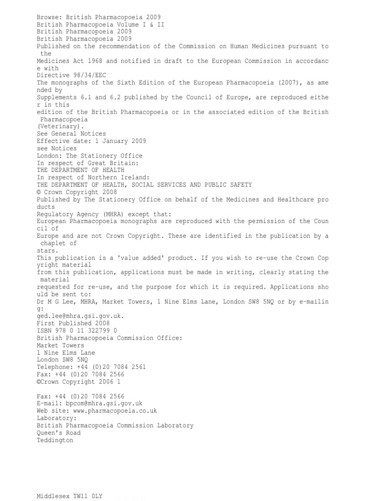 - British Pharmacopoeia 2009 Free Download Pdf . British Pharmacopoeia (Veterinary) 2013 Prepared By The British Pharmacopoeia Commission, Published In Accordance With Section 99(6) Of The Medicines Act 1968 And Notified In Draft To The.