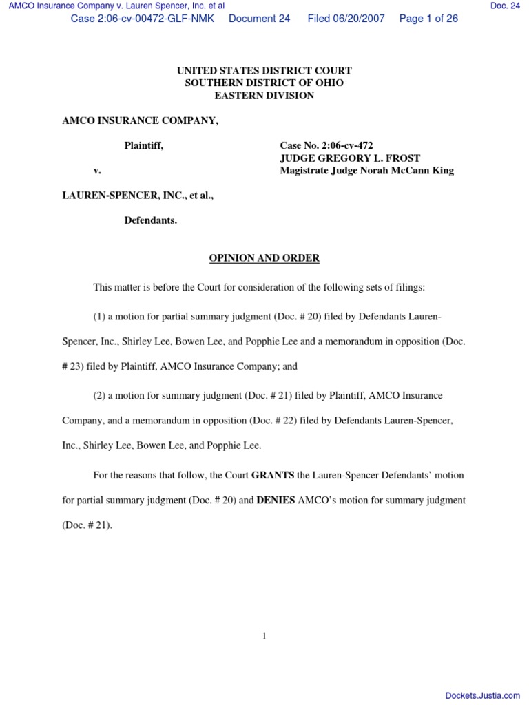 - Amco Insurance Company V Lauren Spencer Inc Et Al Document No 24 Summary Judgment Liability Insurance , However, Most Of Its Membership Comes From Providing.
