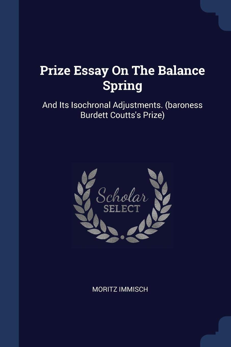 - Prize Essay On The Balance Spring And Its Isochronal Adjustments Baroness Burdett Coutts S Prize Immisch Moritz 9780371235652 Amazon Com Books . These Nominated Essays Are Posted Below With The Permission Of The Authors.